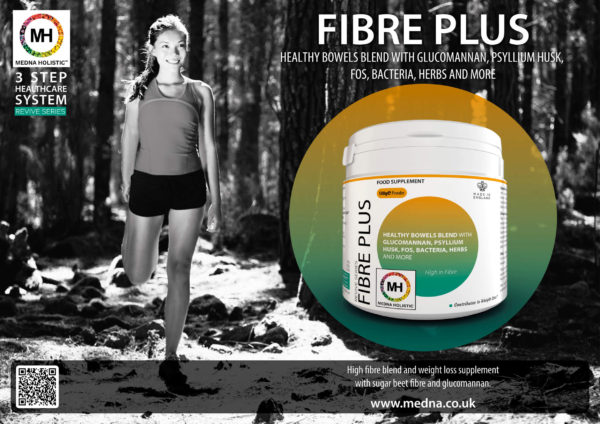REVIVE SERIES – With high fibre content derived from psyllium husk, glucomannan and sugar beet, the Medna Holistic Fibre Plus is a Revive Series healthy bowel blends, contributes to an increase in faecal bulk.